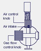 - Both the gas control knob and the air control knob can be used to regulate the flame.